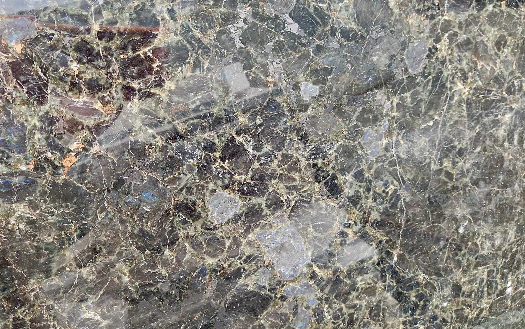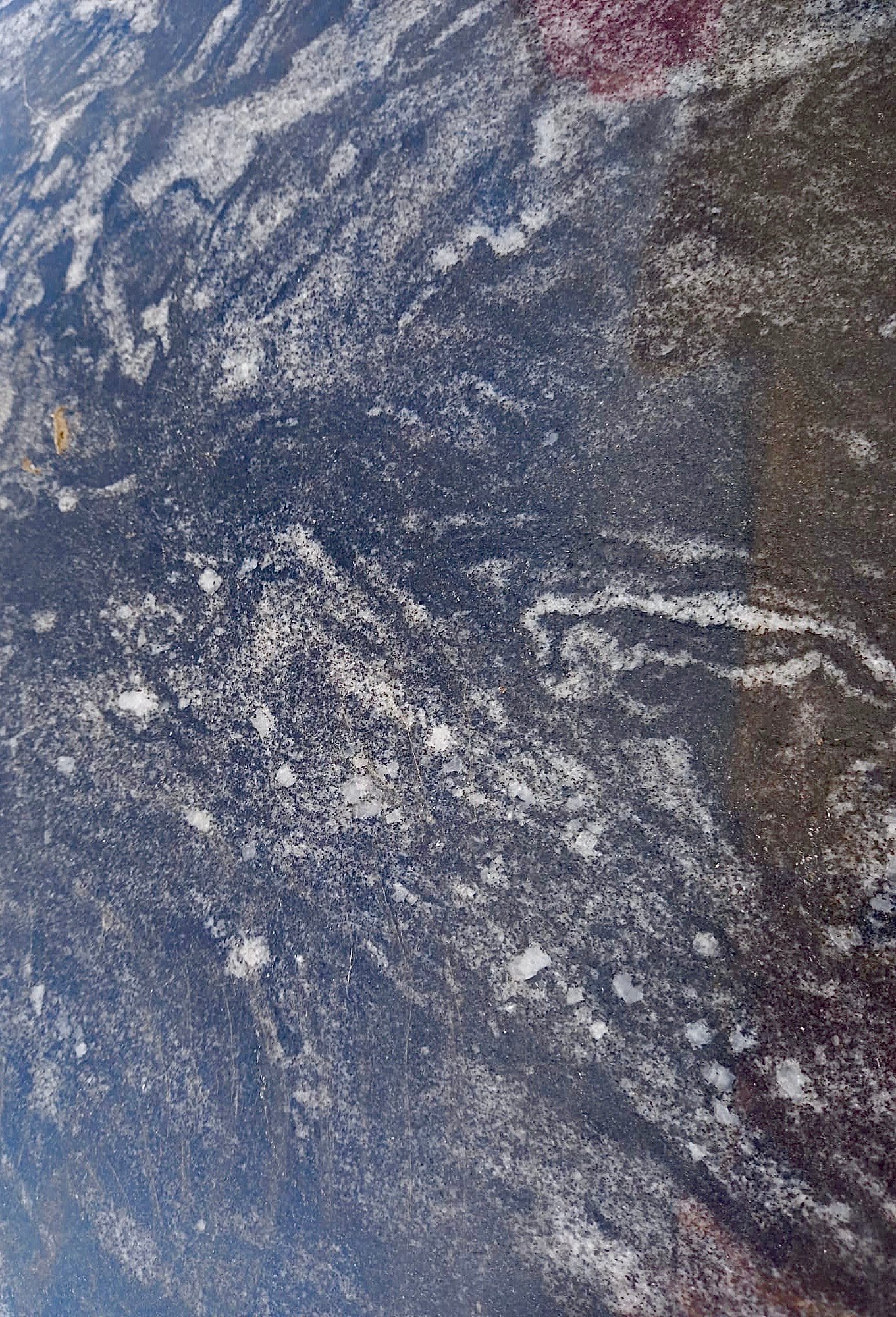 Granitul Black Forest se evidențiază prin culoarea sa închisă, negru-verde, traversată de venaturi dramatice albe sau aurii, cu aspect natural puternic.